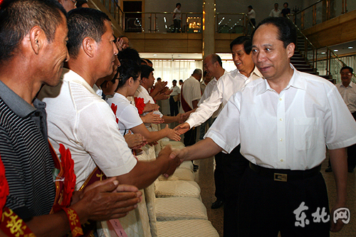 | 吉炳軒等接見受表彰的先進集體、個人代表和見義勇為英雄。 東北網記者 印蕾攝 |