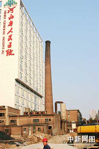 圖為事故現場北側的河北省人民醫院舊鍋爐房。 李光 攝