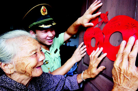剪紙送老人 一同迎國慶(圖)