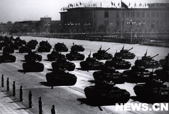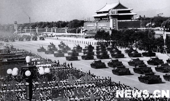 向著工業化飛躍前進的偉大祖國,給了人民解放軍各種現代化武器裝備。受閱各部隊的裝備中最新式自動步槍、大炮、坦克、高速度的噴氣殲擊機,都是祖國制造出來的。