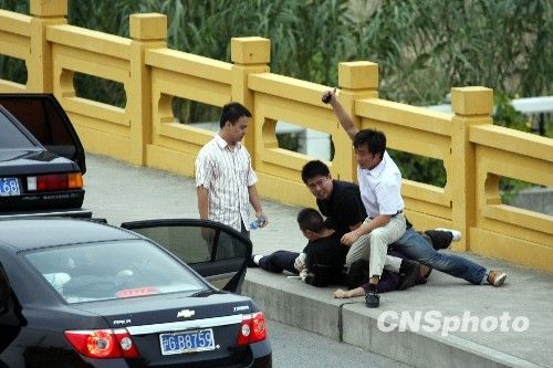 17時10分左右,劫持者已顯得相當疲憊。這時,一輛轎車開上橋面,從車後座突然衝出三名民警,乘男子不備將人質一舉解救。隨後,十多名民警一擁而上,將劫持人質的男子按倒在地。人質和劫持者都無恙。
