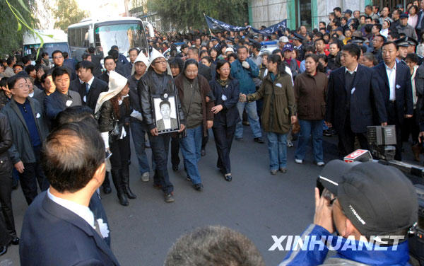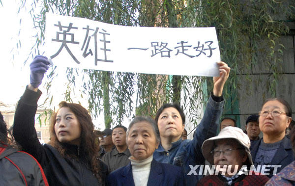 當日,長春市數千群眾送別在『9·29』長春郵政儲蓄所被搶案中勇斗持槍搶劫歹徒的長春市民紀長秋。