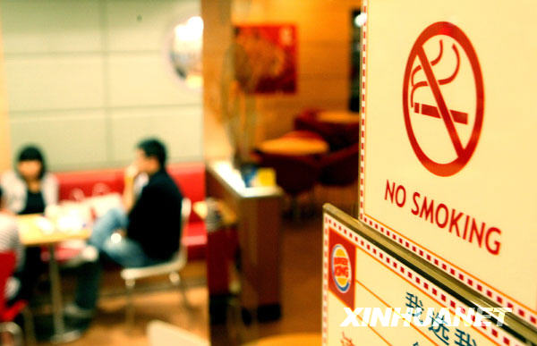 10月22日,上海市中心城區一家商業餐廳內張貼著醒目的禁止吸煙標志。