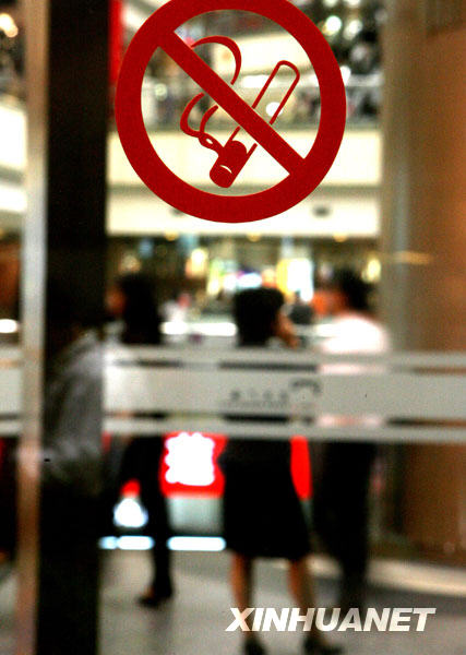 10月22日,上海市浦東新區陸家嘴一家大型商廈門前張貼著醒目的禁止吸煙標志。