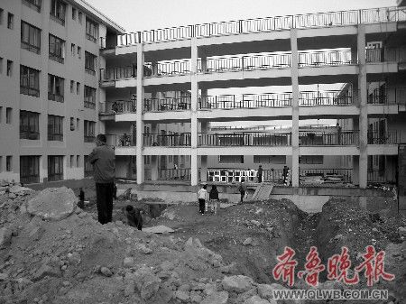 教室還未建成學生就要上課走進北一號公寓,記者發現地面還未打掃,而牆體上也有些坑坑窪窪,顯然還未粉刷完。由於宿捨裡沒有水,而且不能燒水,同學們只能買一些礦泉水喝。更為嚴重的是,廁所的便池已經被堵住,根本無法使用。