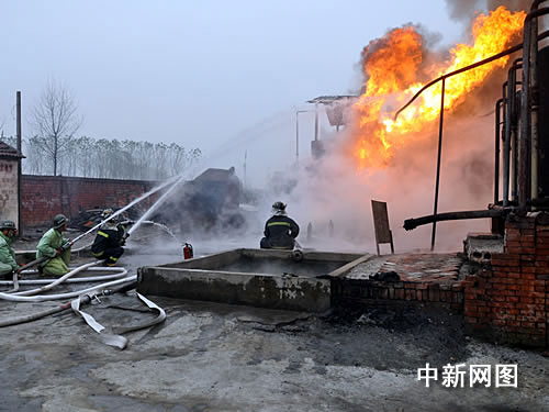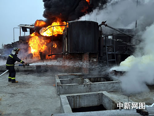 江蘇海安一煉油廠煉爐泄漏引燃四噸廢油(組圖)