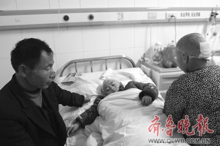 23日,在棗礦醫院,行凶者的丈夫吳某陪在兩個受傷的女兒身邊。趙慧白雪岩攝