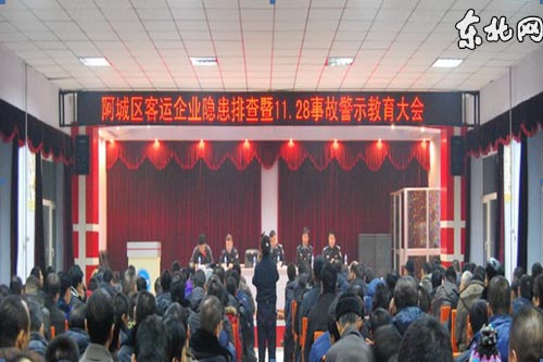 會議中通報了大慶肇源發生的11·28客車意外起火造成10人死亡,1人受傷的重大事故,傳達了阿城區交警大隊關於開展營運客車隱患排查整治的緊急通知,阿城區各運輸公司、公汽公司、東方客運有限公司等代表,就如何做好隱患排查,如何搞好企業的安全運營,如何確保客運車輛和乘客的安全作了表態發言。