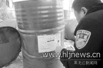 16日零時,在哈市南崗區龍運舊機動車交易市場院外,30桶易燃液體三甲基氯硅烷被棄路邊,接到報警的哈南派出所民警看守了一夜,16日上午,易燃品被運走。